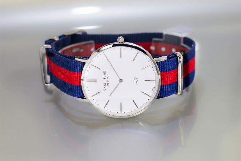 Carl J Sund Classic 1912 prata 40mm & pulseira NATO. Entregado em um porta-jóias elegante de couro e um cartão de garantia internacional válido por 24 meses.